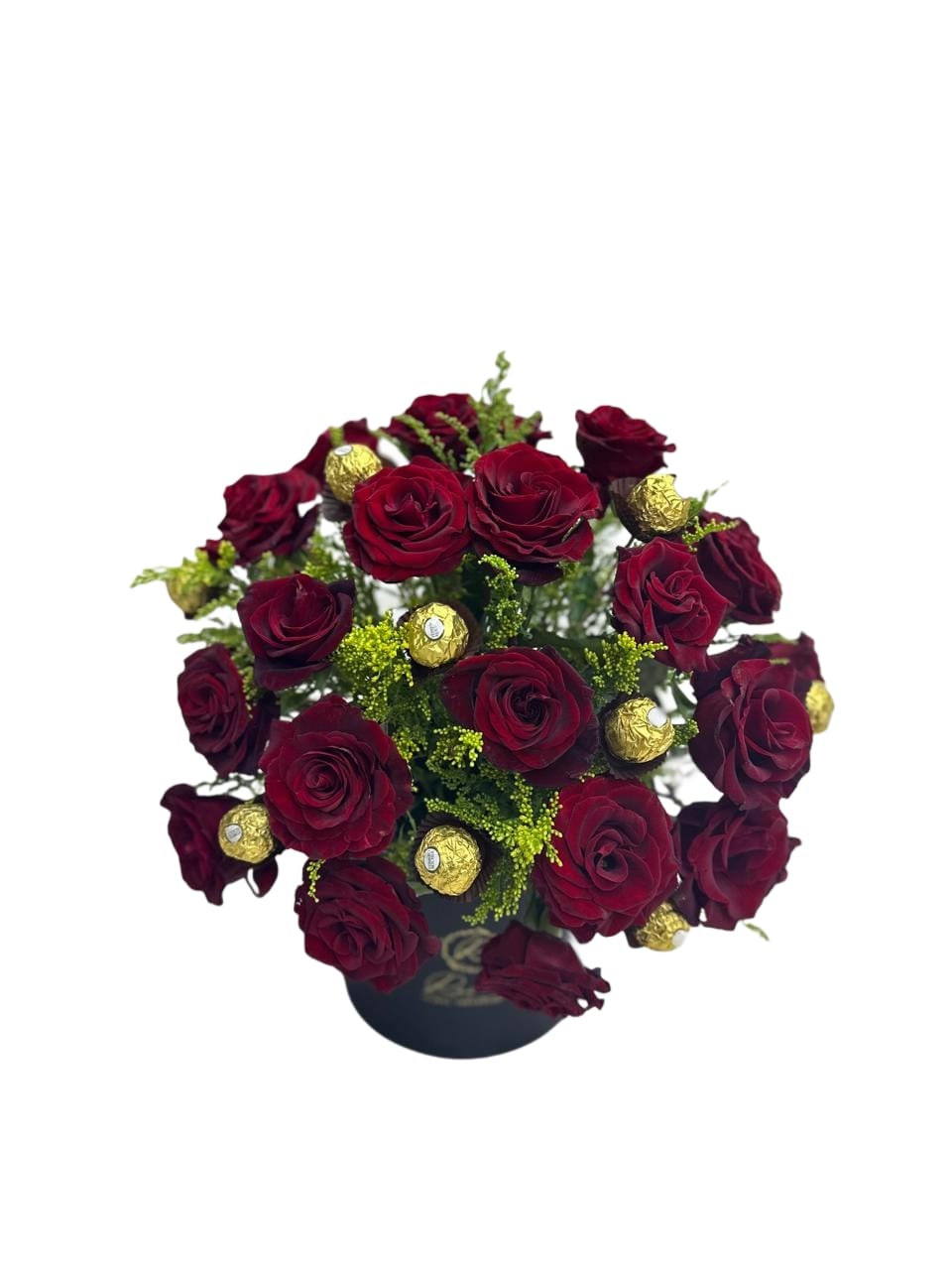 عبّر عن حبك مع بوكيه ورد – تنسيق رائع من الورد الأحمر، والأوراق الخضراء التي تمنحك الشعور بالطبيعية، مثالي للاحتفال بعيد الحب والتعبير عن مشاعرك بشكل رومانسي مع إمكانيه تعزيز البوكيه وجعلة يداعب حواس من تحب ليست فقط مشاعرهم مع أضافة لمسة خاصة تعكس ذوقك وبحبك بإضافة شوكولاتة أو بالون رومانسي،
