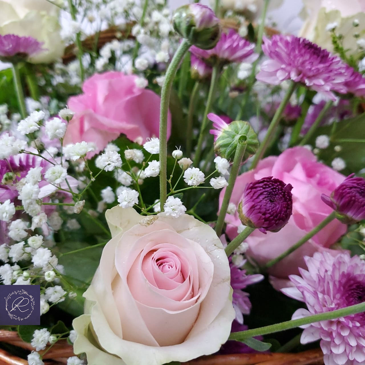 الحب يملأ الأجواء بهذه الباقة الفاخرة من الارجوان والورود المختارة خصيصا من قبل “ريحان فلورال” لتقدم لك سلة خاصة من الزهور الارجوانية والوردية لمن تحب.