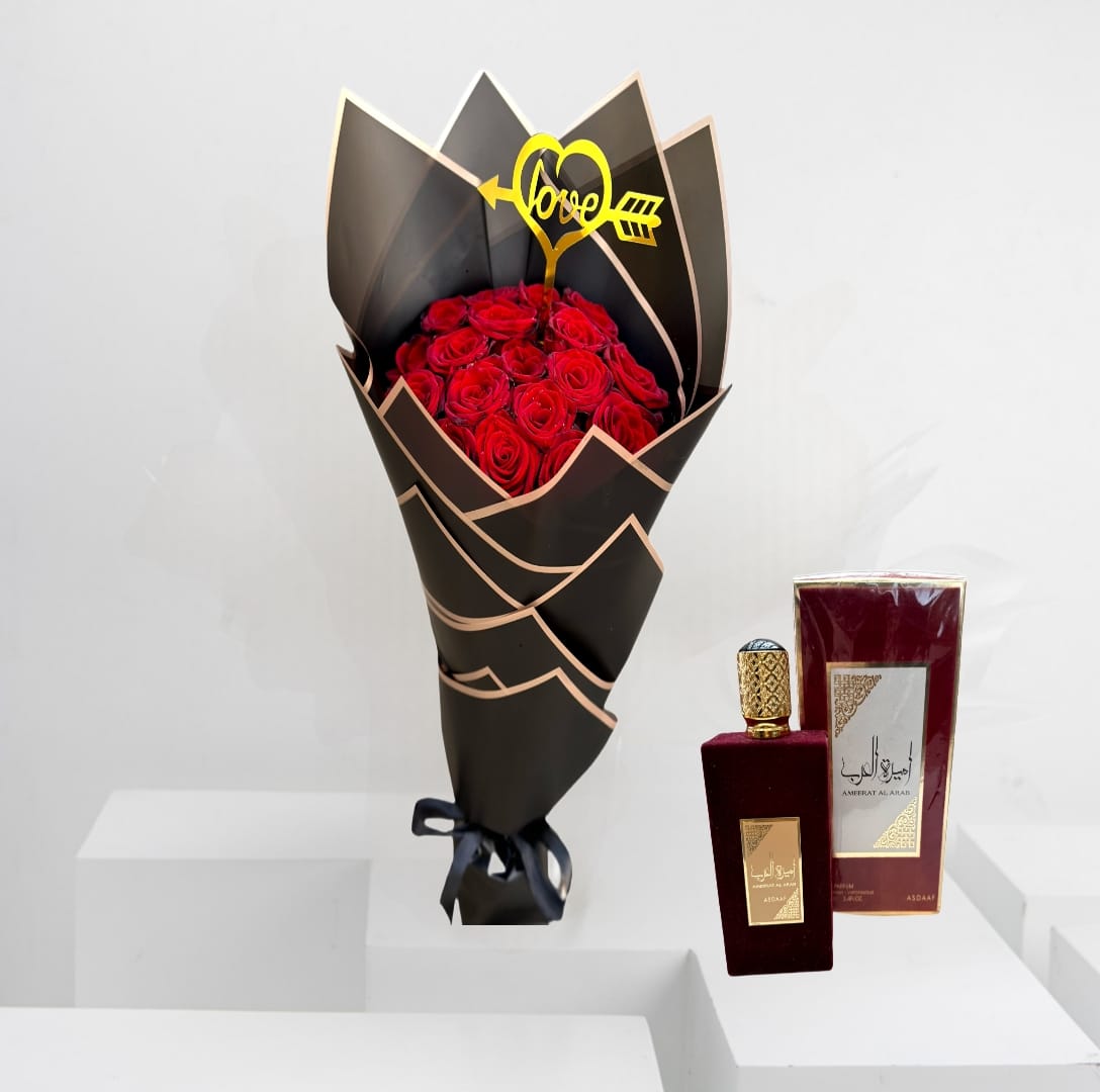 A gorgeous red rose bouquet comes in a rose bouquet with an elegant black wrapper that increases the splendor and splendor of the scene. This classic, romantic bouquet of roses, with their fragrant scent and wonderful color, is the epitome of love and care. It is truly the most delicate way to express love and gratitude to those you love. It will remain a dear memory for them for years to come.