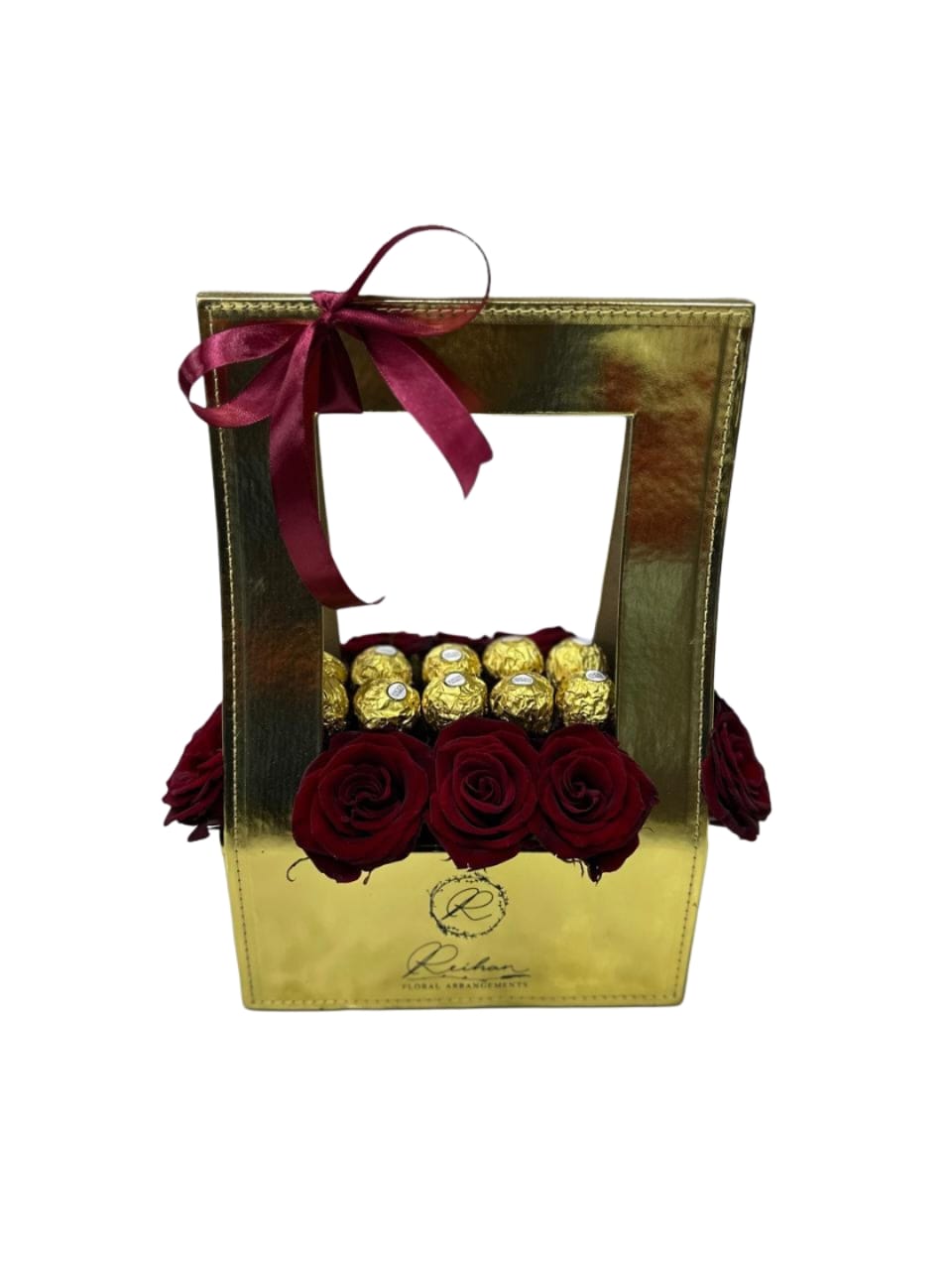 Express your love with  bouquet – a wonderful arrangement of red roses and green leaves that give you a natural feeling, perfect for celebrating Valentine’s Day and expressing your feelings in a romantic way with the possibility of enhancing the bouquet and making it tickle the senses of your loved one, not just their feelings, with the addition of a special touch that reflects your taste and love by adding chocolate or a romantic balloon, or a scent