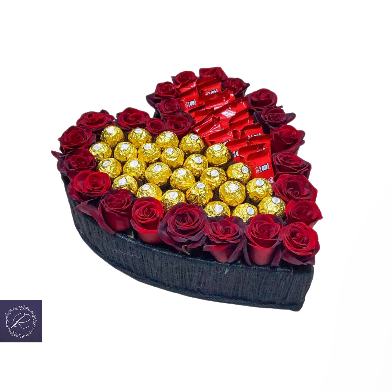 These gorgeous flowers are a true symphony of the senses, loving and honest with Fresh Red Flowers, Ferrero Chocolate & KitKat with a premium Bag. It’s a Premium Heart.